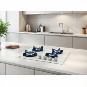 يأتي هذا الموديل بتصميم "بلت إن" عصري يدمج بين الفخامة والعملية، حيث يتميز بسطح زجاجي أبيض ناصع يمنح مطبخك مظهراً واسعاً ومنظماً. صُمم ليكون قطعة فنية سهلة التنظيف مع أداء احترافي بفضل الشعلات التوربو القوية.