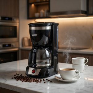 تأتي ماكينة القهوة مع إبريق زجاجي يتحمل الحرارة، ونظام فلتر يضمن تحضير قهوة نقية وغنية بالنكهة. تتميز بتصميم مدمج وسهل الاستخدام، مع زر تشغيل مزود بمؤشر ضوئي لسهولة التحكم، كما أنها سهلة التنظيف والاستخدام اليومي.