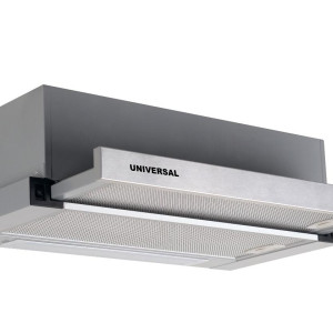شفاط UNIVERSAL بتصميم "سحاب" (Telescopic) عصري وموفر للمساحة، حيث يتم تركيبه داخل الخزانة ويُسحب للخارج عند الاستخدام لزيادة مساحة شفط الأبخرة. يتميز بهيكل خارجي متين من الستانلس ستيل، مما يجعله قطعة أنيقة وعملية تتناسب مع المطابخ الحديثة.